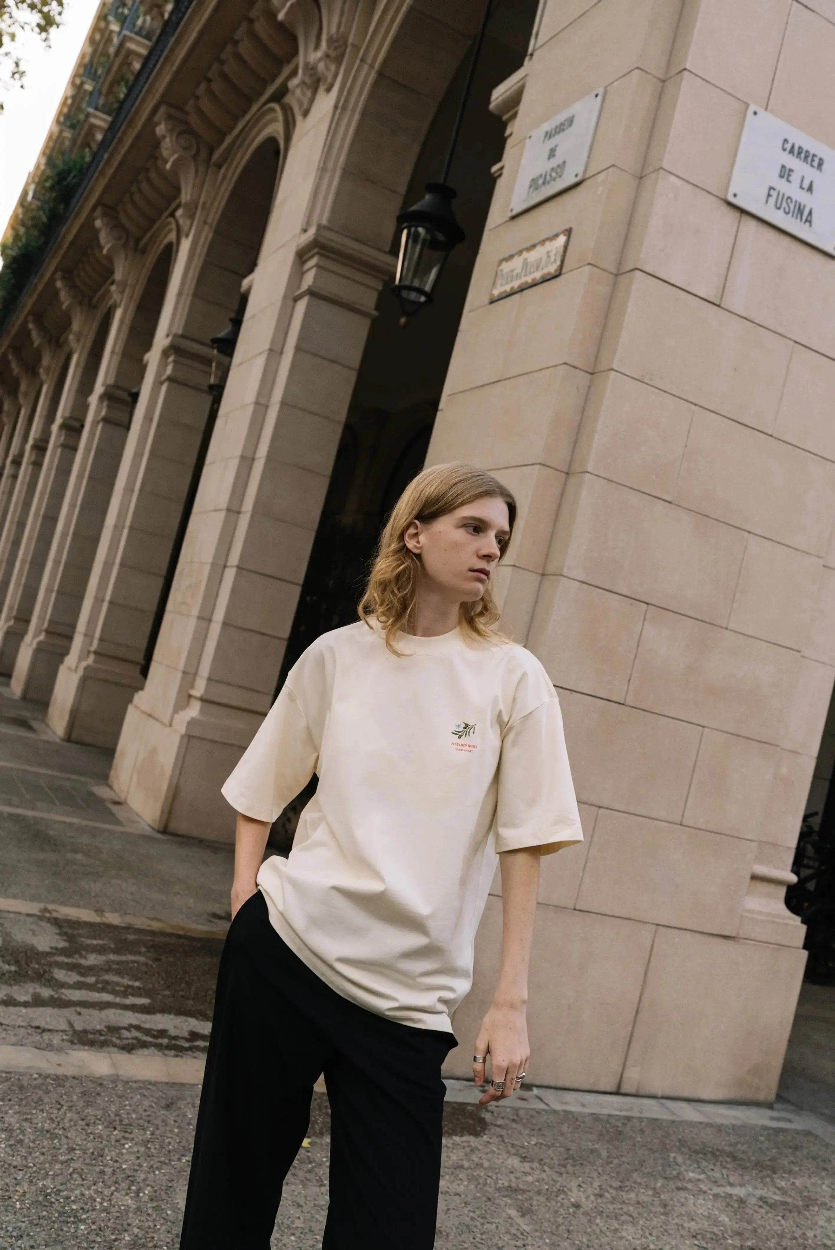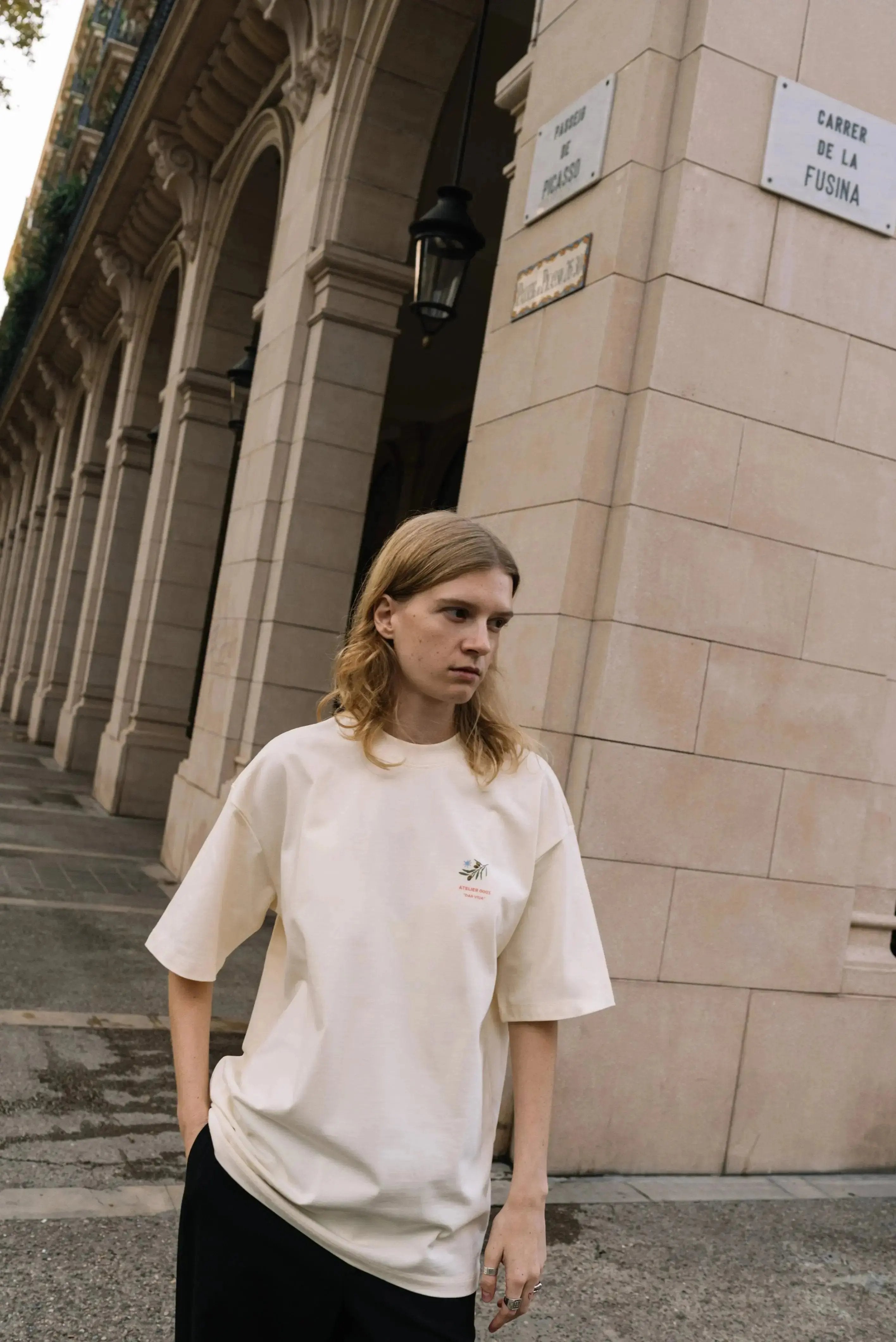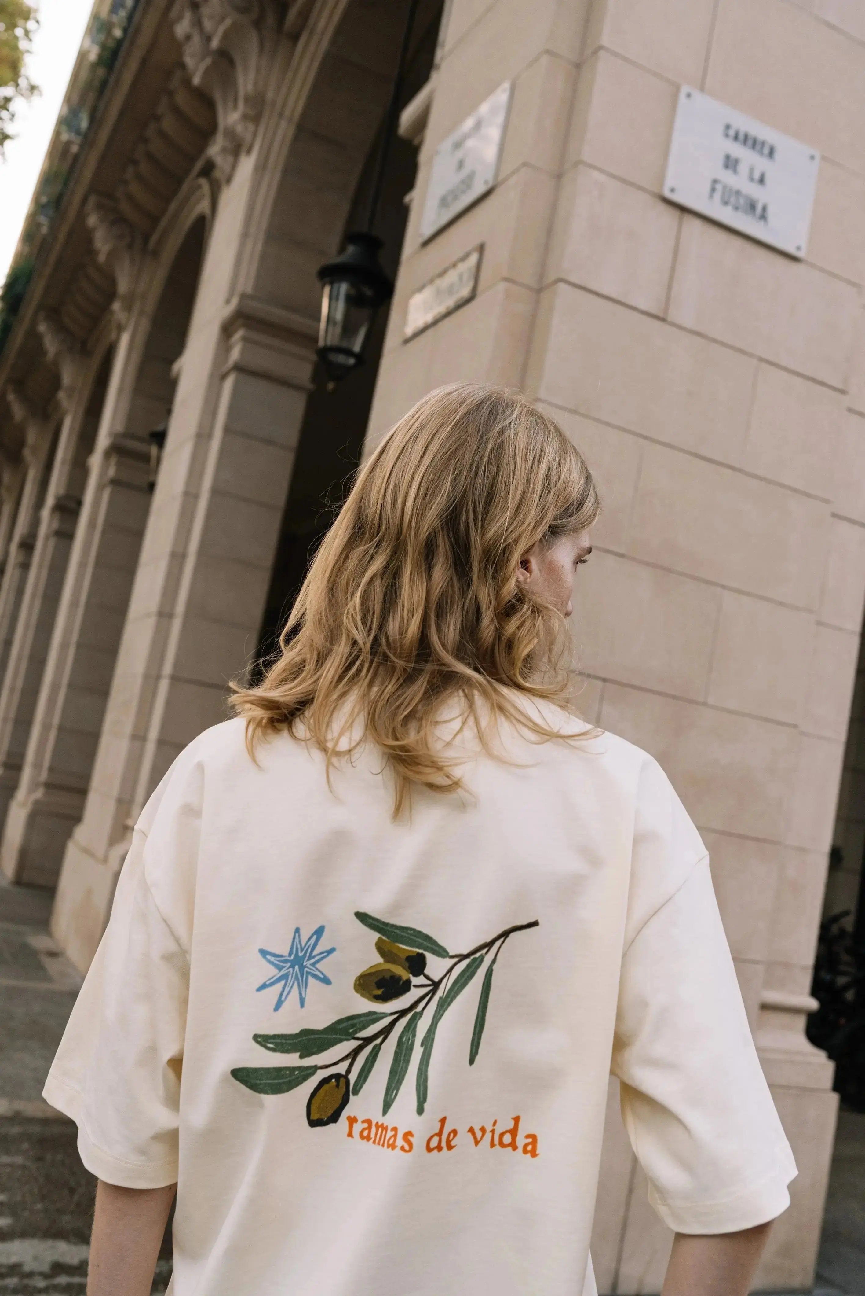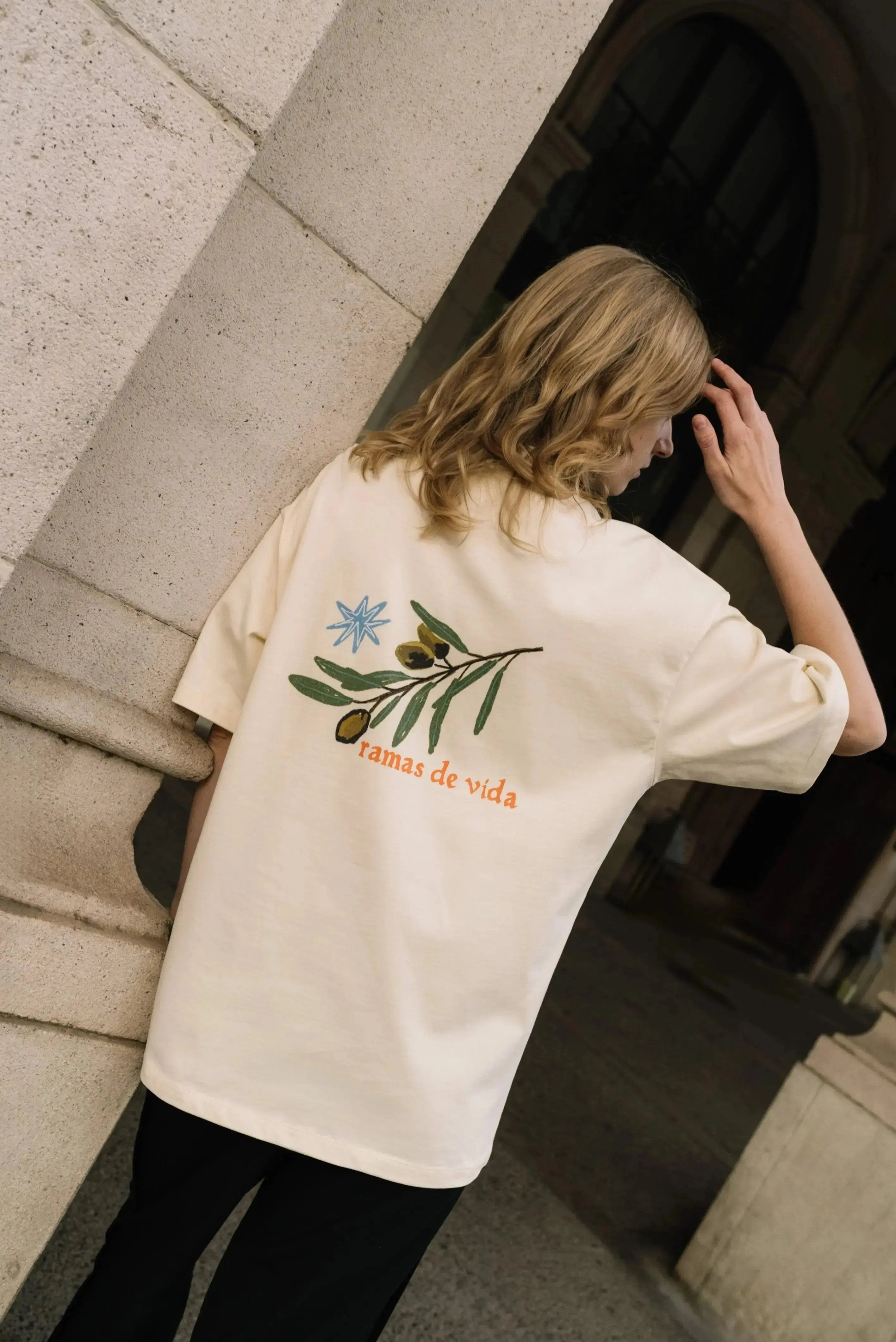 The Tee Ramas De Vida in pastel cream is a Collector's Piece with a limited edition of only 24 units and part of the "DAR VIDA" capsule in collaboration with Caitlin Flood-Molyneux. It features the Atelier motto on the front and the Ramas De Vida artwork on the back.