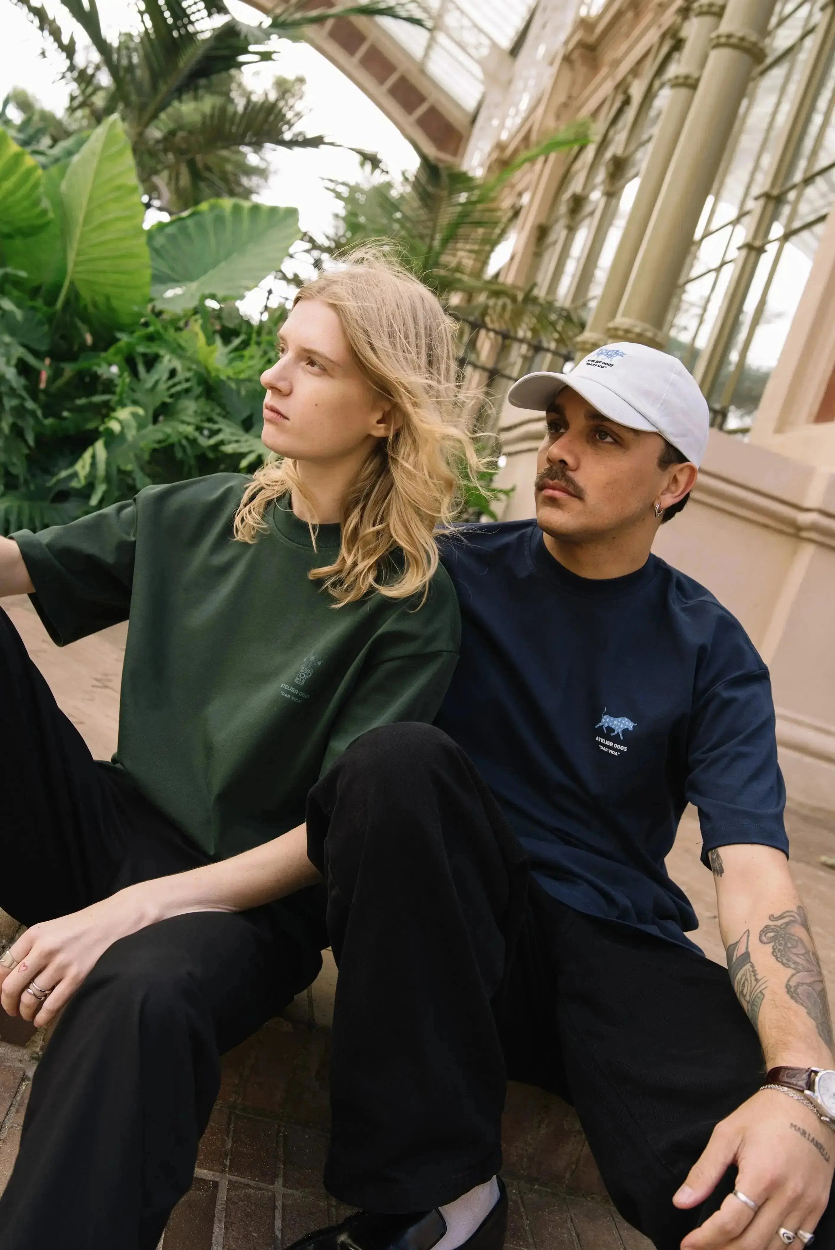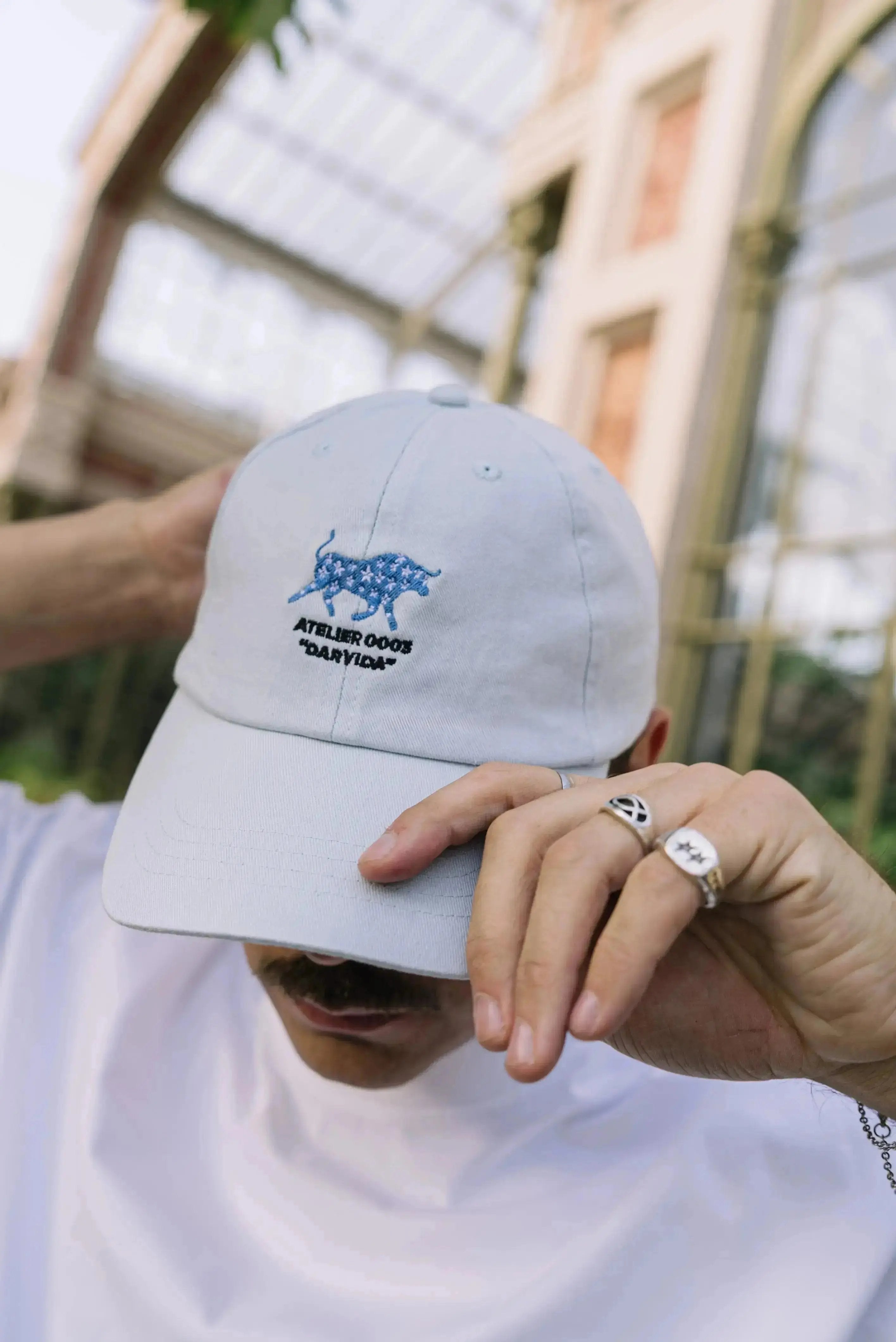 The Cap Pasión in pastel blue is part of the "DAR VIDA" capsule in collaboration with Caitlin Flood-Molyneux. It features the Pasión artwork embroidered on the front.