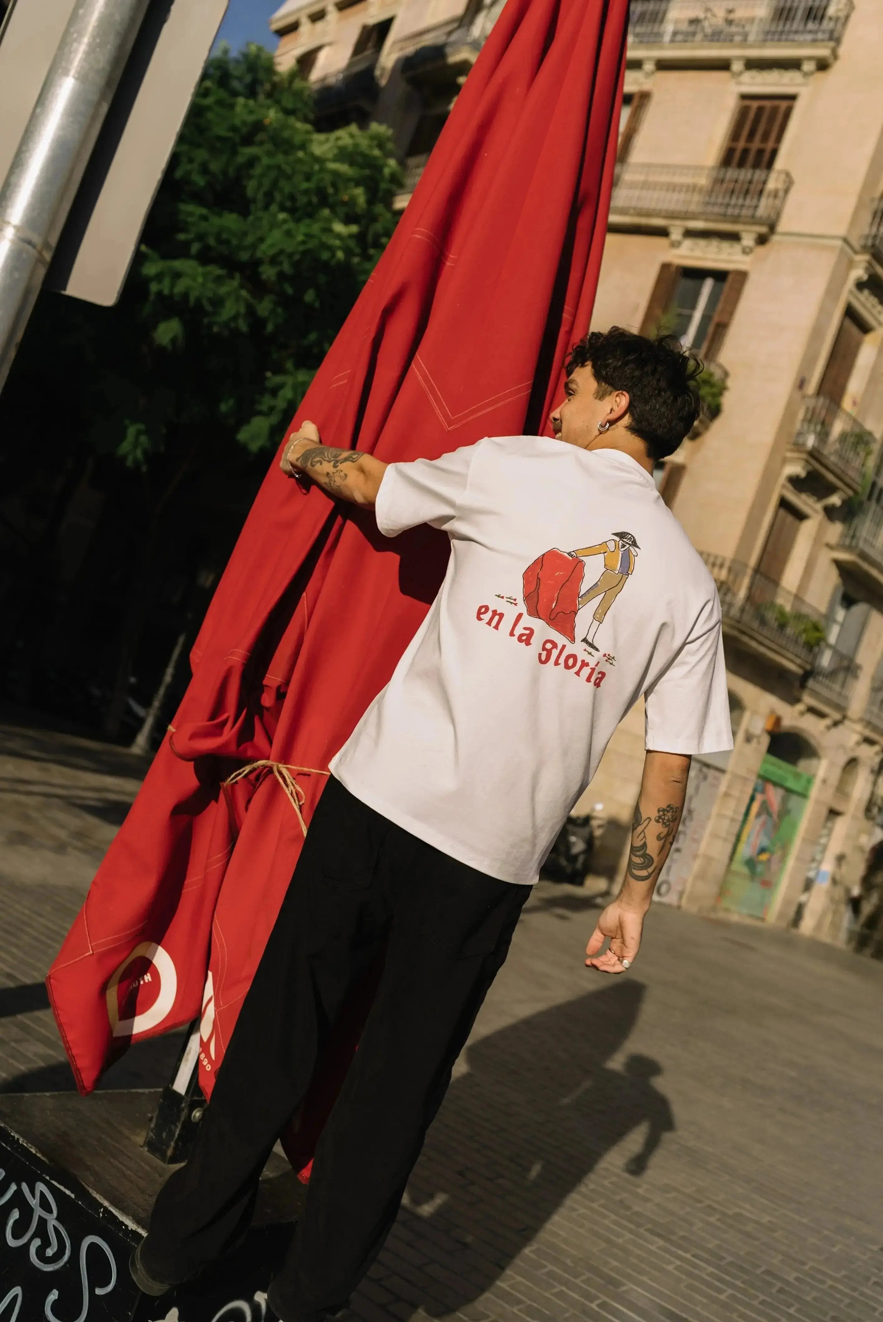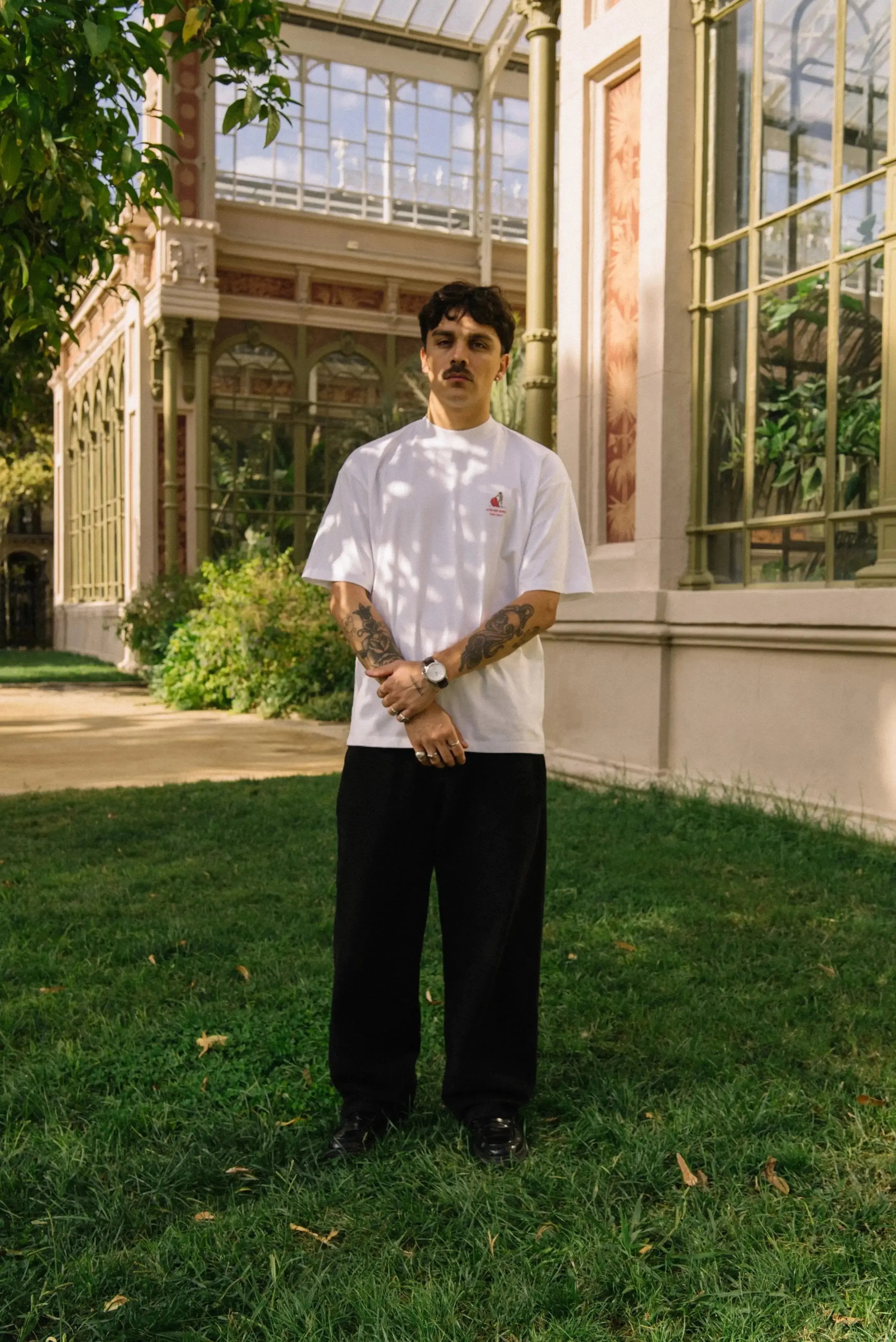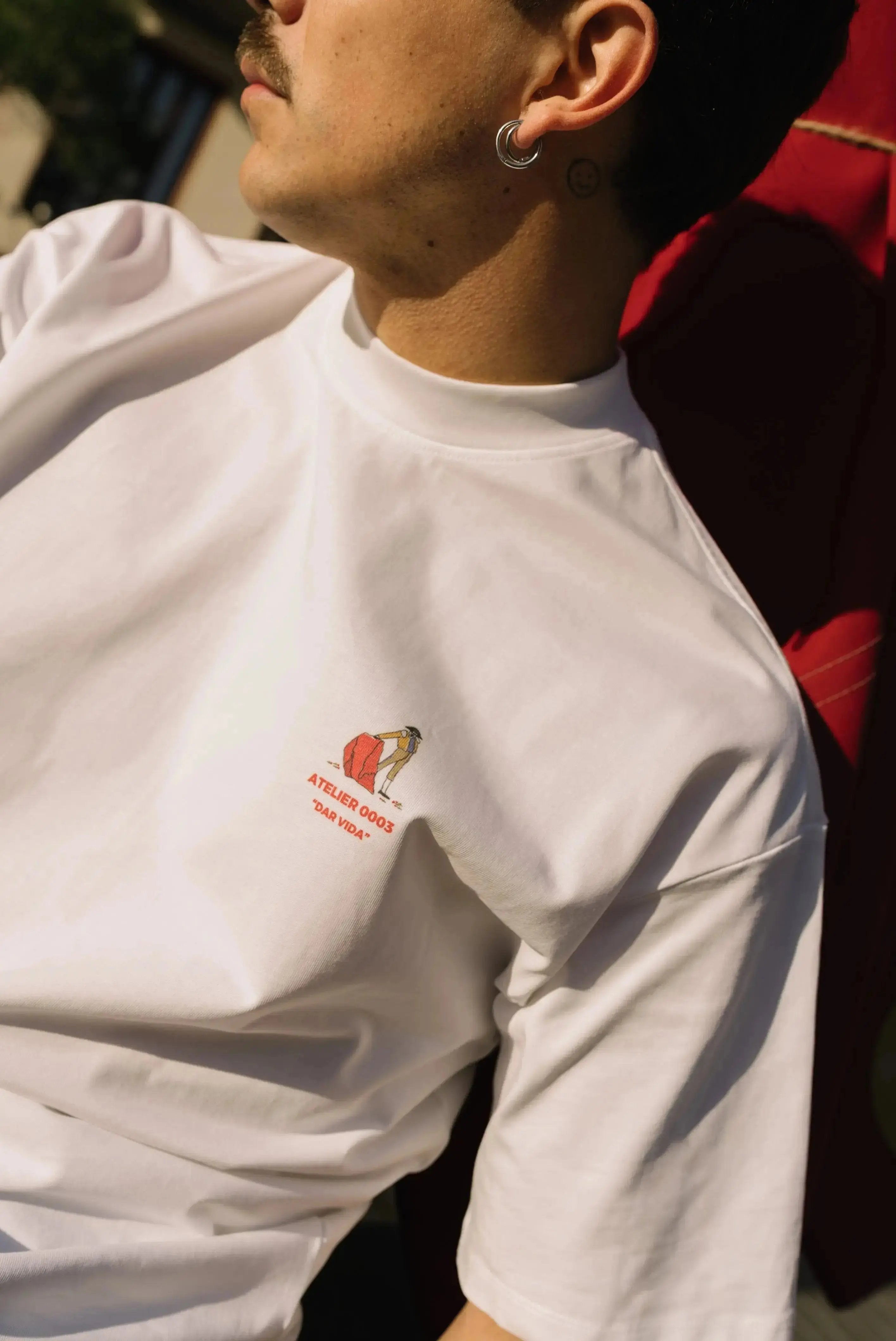 The Tee Gloria in midnight black is part of the "DAR VIDA" capsule in collaboration with Caitlin Flood-Molyneux. It features the Atelier motto on the front and the Gloria artwork on the back.